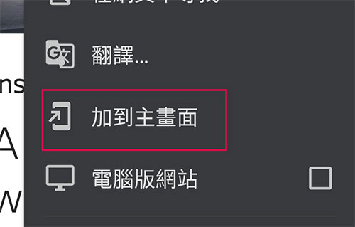 不論是 Chrome 或是 Safari ,輸入網址,按下分享鈕後請按[加入主畫面],即可於主畫面產生APP的圖示,接下來的操作就如同一般的APP