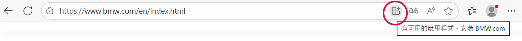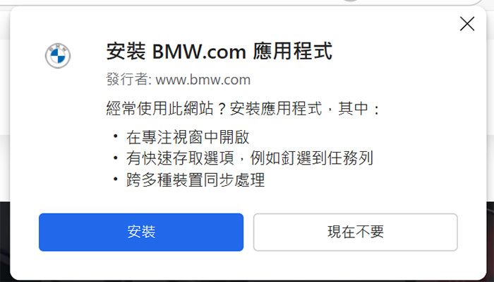 若看到安裝鈕圖示,即表示該網址具有PWA模式 (註:適用於大部分情況,有少數PWA網站僅針對行動裝置才適用)。