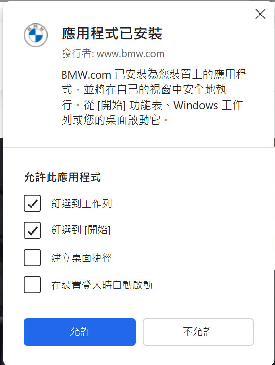 按下安裝後,系統會詢問要不要放在工作列或是捷徑中,可依照個人需求勾選